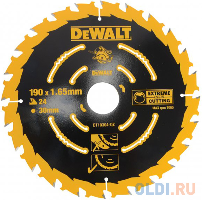 Круг пильный твердосплавный DEWALT DT10304-QZ по дереву 190 / 30 1.65 24 wz +18°