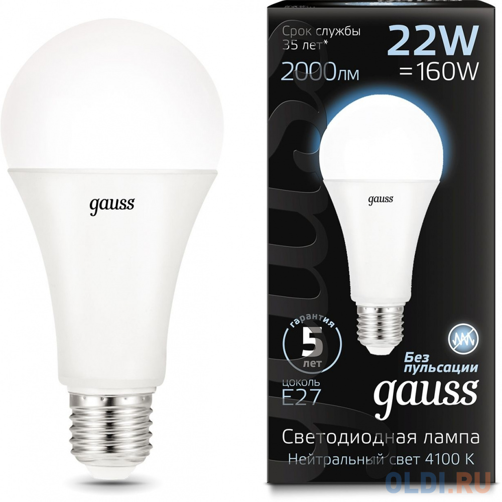 Лампа светодиодная E27 22W 4100К груша матовая 102502222![]()
