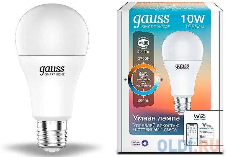 Умная лампа Gauss IoT Smart Home E27 10Вт 1055lm Wi-Fi (упак.:1шт) (1080112)![]()