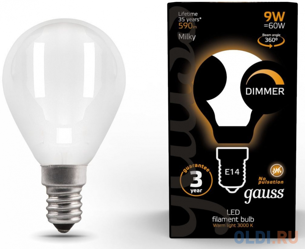 Лампа светодиодная Gauss Filament 105201109-D 9Вт цок.:E14 шар 220B 3000K св.свеч.бел.теп. (упак.:10шт)![]()
