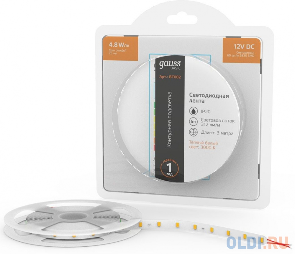 Лента светодиод. Gauss Basic 3м (BT002)![]()