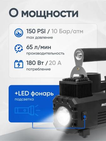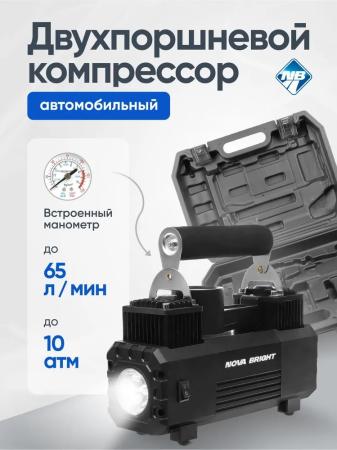 Nova Bright Компрессор АК-65 двухпоршневой, до 65 л/мин.,140 PSI, 12В 47160
