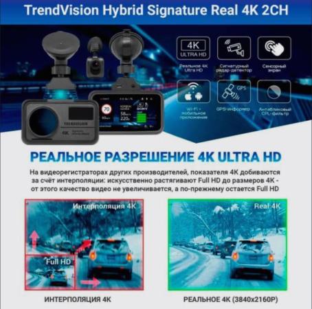 Видеорегистратор TrendVision TDR-725 Real 4K 2CH черный 8Mpix 2160x3840 2160p 170гр. GPS NT96670