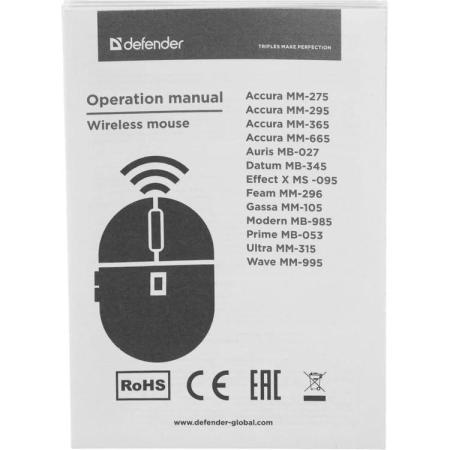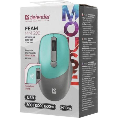Беспроводная мышь Defender Feam MM-296 mint (USB, 3 кнопки, оптическая, 1600dpi) (52294)