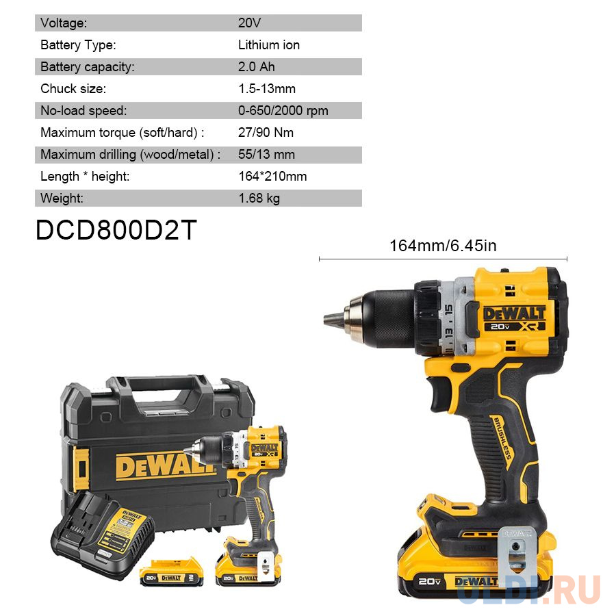 Бесщеточная дрель-шуруповерт Dewalt DCD800D2T![]()