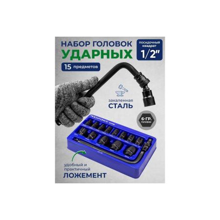 Rockforce Набор головок ударных 15 предметов 1/2" 6-гр., в ложементе RF-4159K(58492)