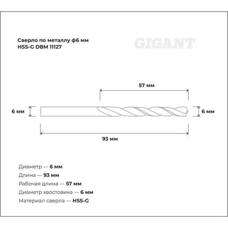 Gigant Сверло по металлу ф6мм HSS-G DBM 11127