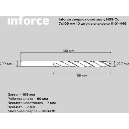 Inforce сверло по металлу HSS-Co 7x109мм 10 штук в упаковке 11-01-449