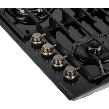 Газовая варочная панель MAUNFELD EGHG.64.63CB.R/G, 4 конфорки, закаленное стекло, черный
