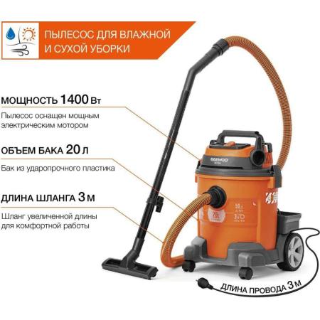 Строительный пылесос Daewoo DAVC 2014, оранжевый