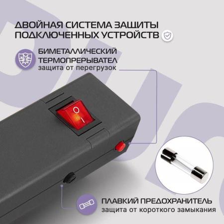 Сетевой фильтр Buro 600SE-16-1.8-B, 1.8м, черный