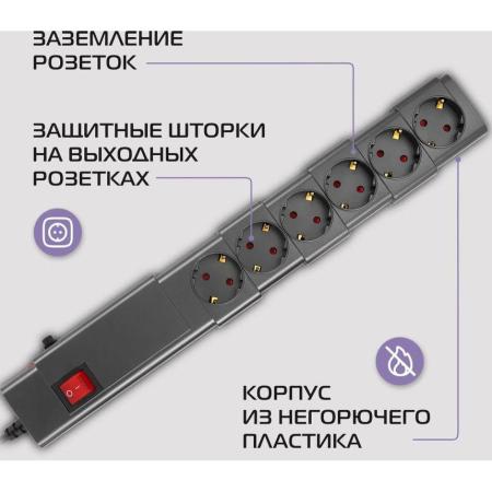 Сетевой фильтр Buro 600SPro-16-1.8-G, 1.8м, графитовый