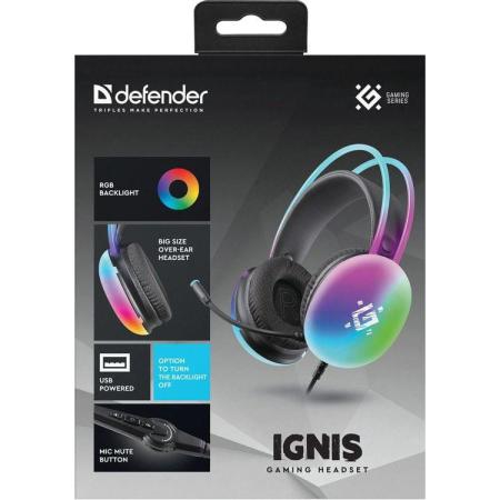 Гарнитура игровая Defender Ignis, для компьютера, накладные, проводные, черный [64441]