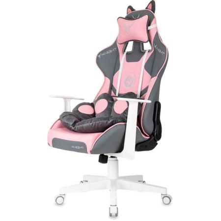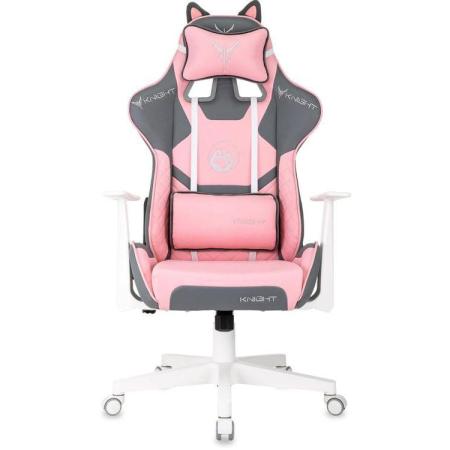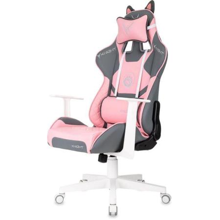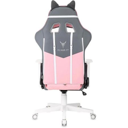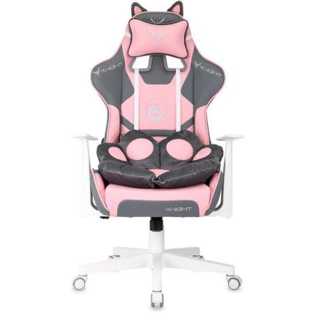 Кресло игровое KNIGHT Catzy, экокожа, до 120кг, серый/розовый