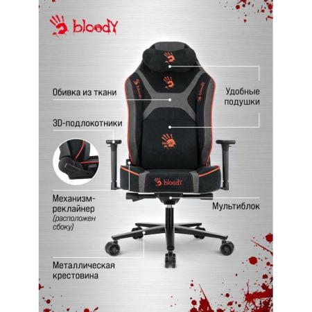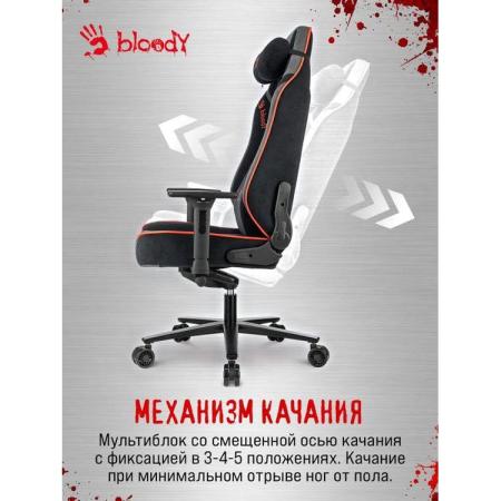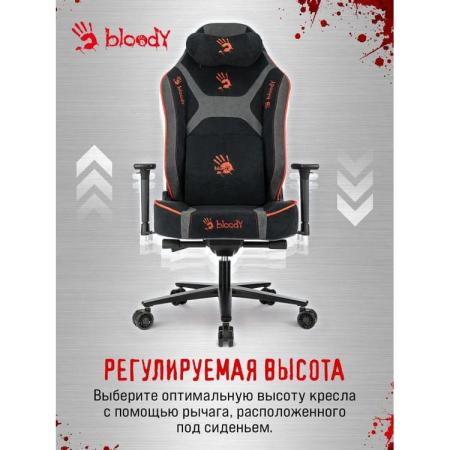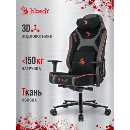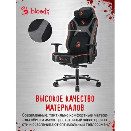 Кресло игровое A4TECH Bloody GC-680, искусственная замша, до 150кг, механизм со смещенной осью, регулируемые 3D подлокотники, черный/серый