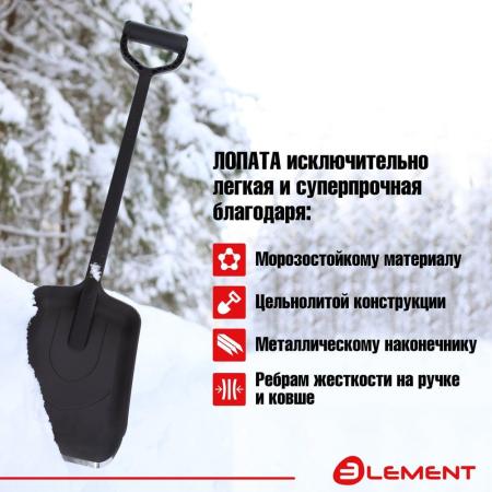 ELEMENT Лопата автомобильная цельнолитая из полипропилена, с металлическим кантом, ELEMENT245807MK