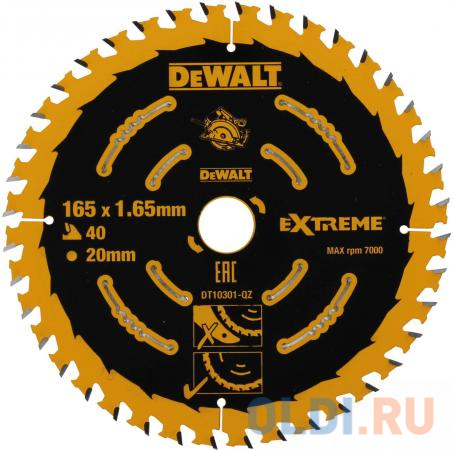 Круг пильный твердосплавный DeWALT DT10301-QZ по дереву EXTREME DEWALT® 165/20 1.65 40 WZ +18°