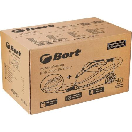 Прочие особенности и свойстваПароочиститель Bort BDR-2500-RR-Iron незаменим при проведении генеральной уборки. Когда нужно быстро очистить дом или офис от грязи, пыли и вредоносных микробов, вызывающих аллергию. Модель облегчает этот процесс и делает его максимально эффективным. Вы не только с легкостью очистите жирные пятна, застаревшие загрязнения разного происхождения с любой поверхности, но и отпарите одежду, шторы. Приятный бонус этой модели – это утюг-парогенератор. Благодаря сухому пару, который подается через отверстия в керамической подошве утюга, вы с легкостью разгладите плотные или сложенные в несколько слоев тонкие ткани, как в горизонтальном положении, так и в вертикальном.