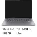 Ноутбук Lenovo Yoga Slim 7 14IMH9 Core Ultra 5 125H 16Gb SSD512Gb Intel Arc 14" OLED WUXGA (1920x1200) без ОС grey WiFi BT Cam (83CV00EARK)
