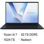 Ноутбук ASUS Vivobook 18 M1807GA-S8054 18", IPS, AMD Ryzen AI 7 445 2ГГц, 6-ядерный, 32ГБ DDR5, 1ТБ SSD, AMD Radeon 840M, без операционной системы, синий [90nb17y1-m00380]